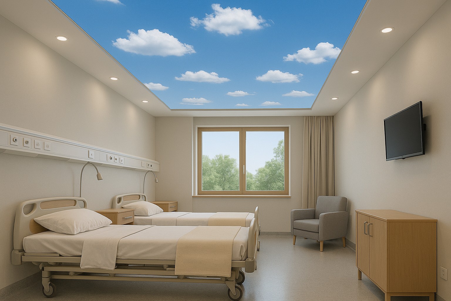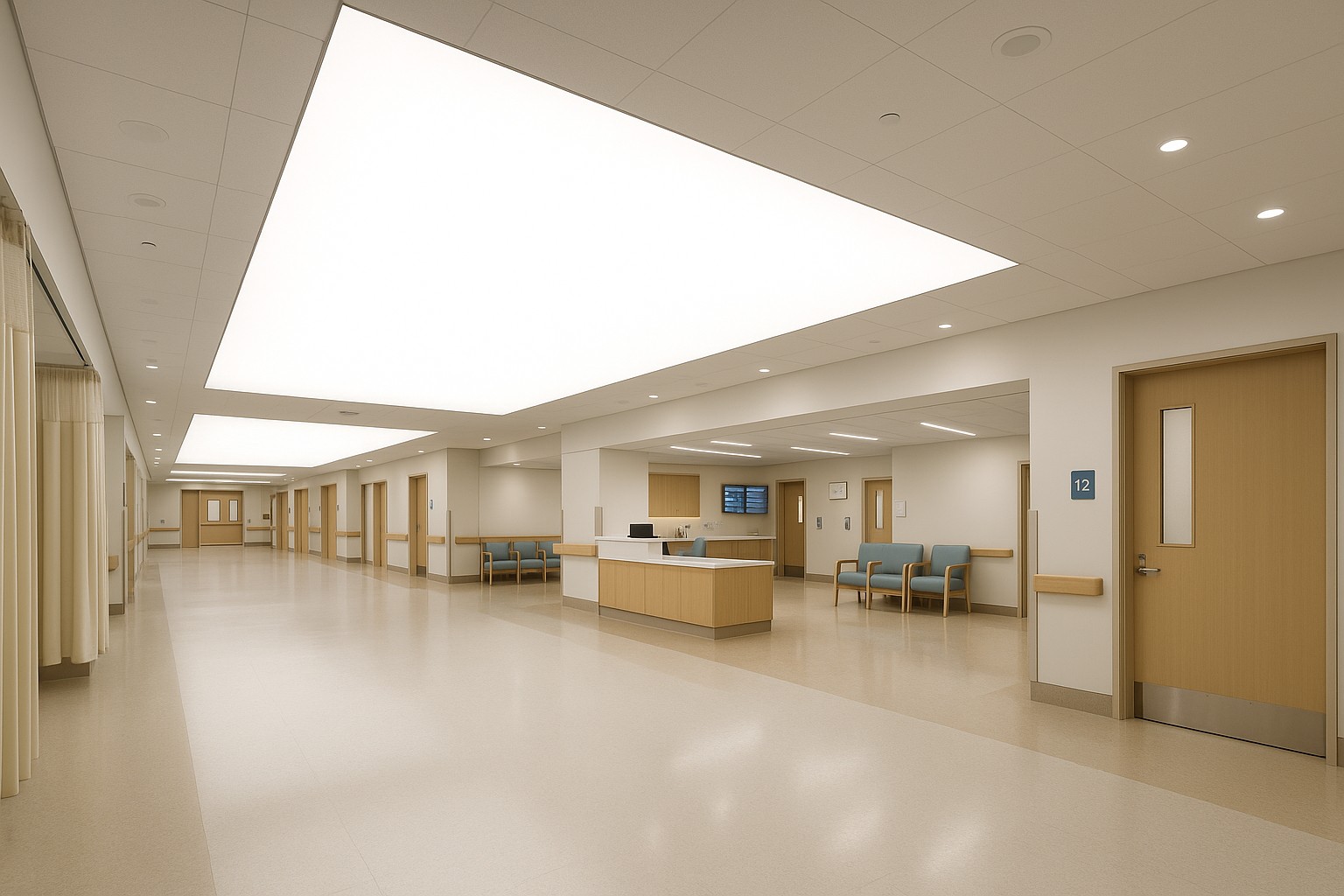 随着医疗环境对光质量要求不断提升,许多医院开始淘汰传统格栅灯和平板灯,转向更舒适、更均匀、更安全的整体面光源照明方案。科恩智能科技推出的医疗级软膜天花系统,以其透光性能高、无眩光、无阴影、光线柔和不刺眼等特点,非常适合用于医生进行精细操作的环境。