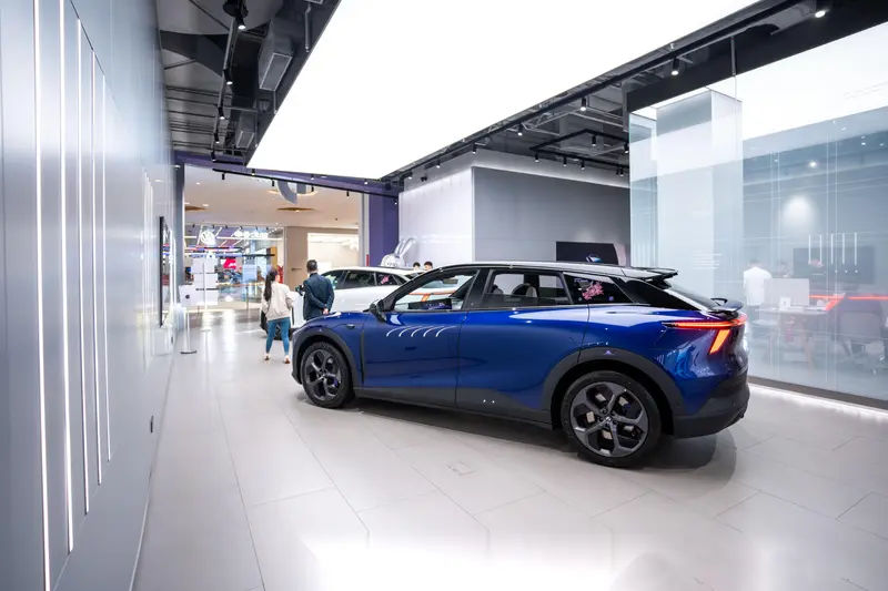 施工上比较注意的是软膜的平整度和灯箱的收边,因为极越的店面线条非常直观,一旦有一点不对劲,视觉上就会被放大。落地效果大家都挺满意,尤其是展车区的光线表现,现场看车的轮廓和漆面反射,比普通条灯或轨道灯的效果自然得多。