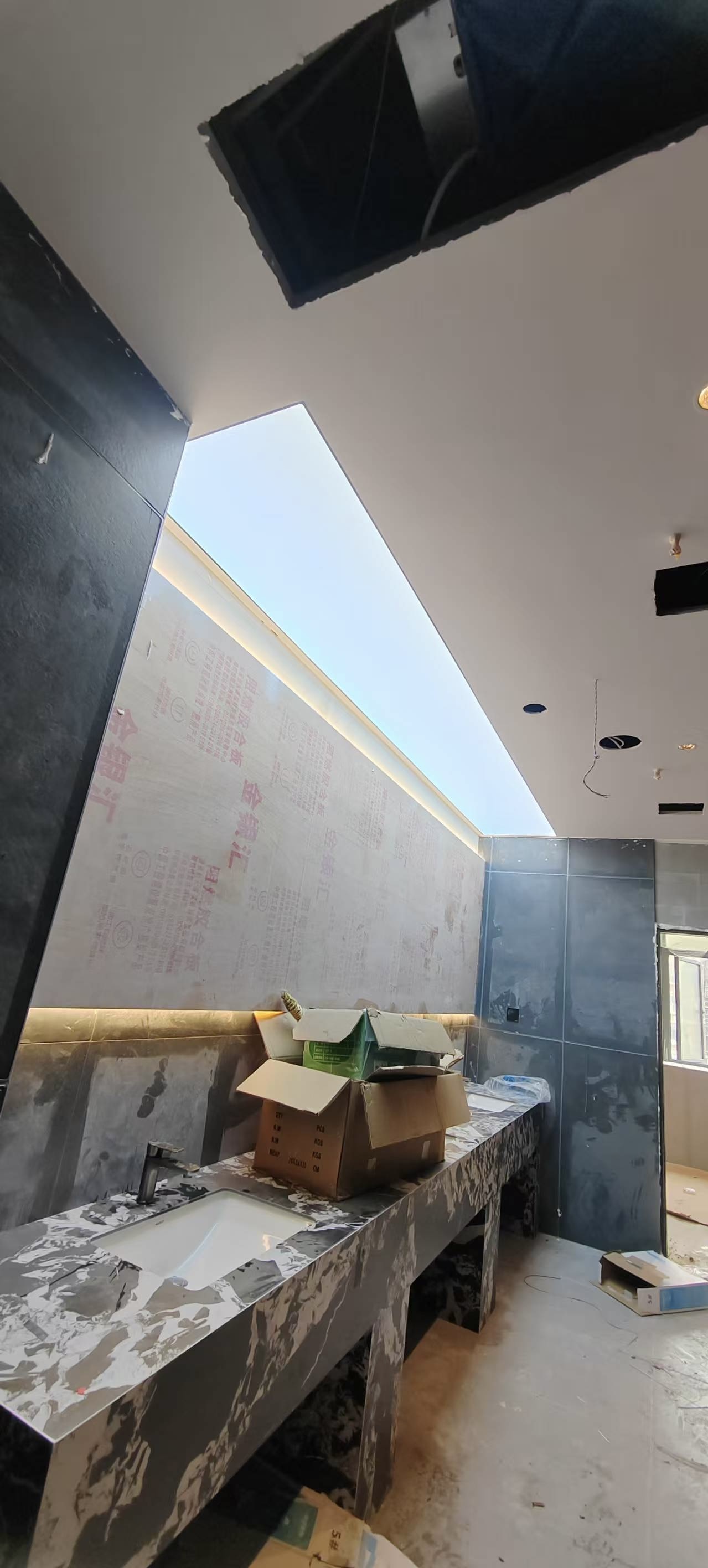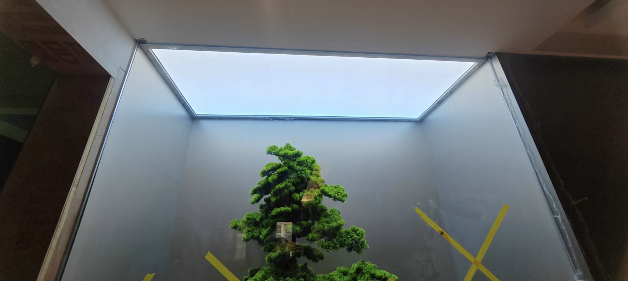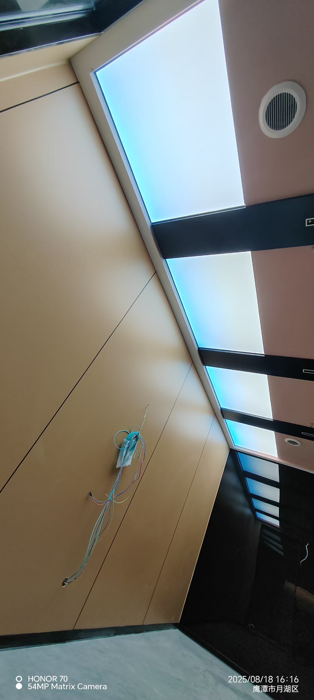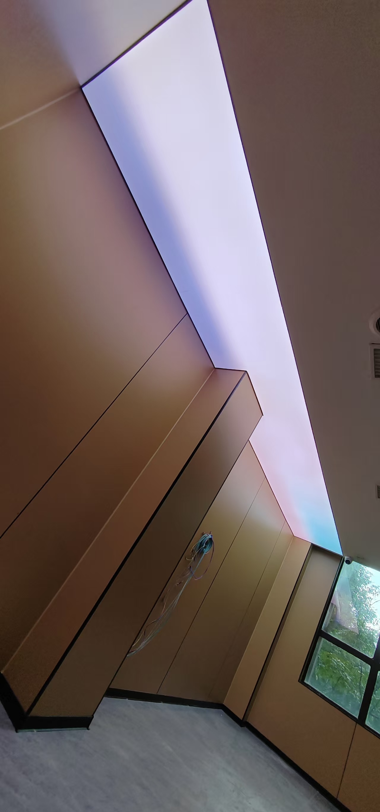 真正装灯的那天,我在现场守了一整天。先把 LED 灯带固定在灯槽里,间距、高度都调了好几遍,就怕光打在软膜上明暗不一。然后就是拉软膜,这活儿真得有耐心,先把四边的胶条卡进龙骨,再一点点把膜拉平、拉紧,不能太用力怕扯坏,也不能松松垮垮的。等最后一块软膜装完,一通电的瞬间,我跟客户都愣了一下 —— 不是那种刺眼的白,而是从浅蓝到白的渐变,就像真的透过天窗看出去的天空一样,走廊一下子就 “活” 了。