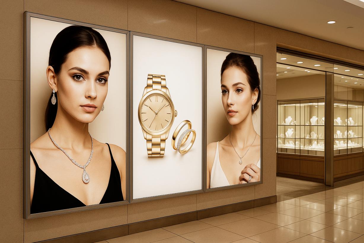 商业零售: 商场、品牌专卖店、购物中心的室内广告、品牌墙、促销指示。