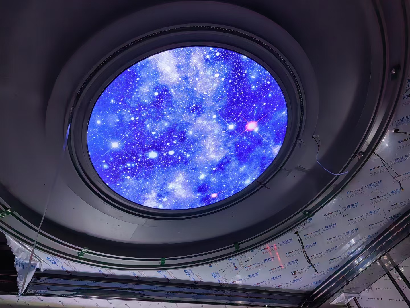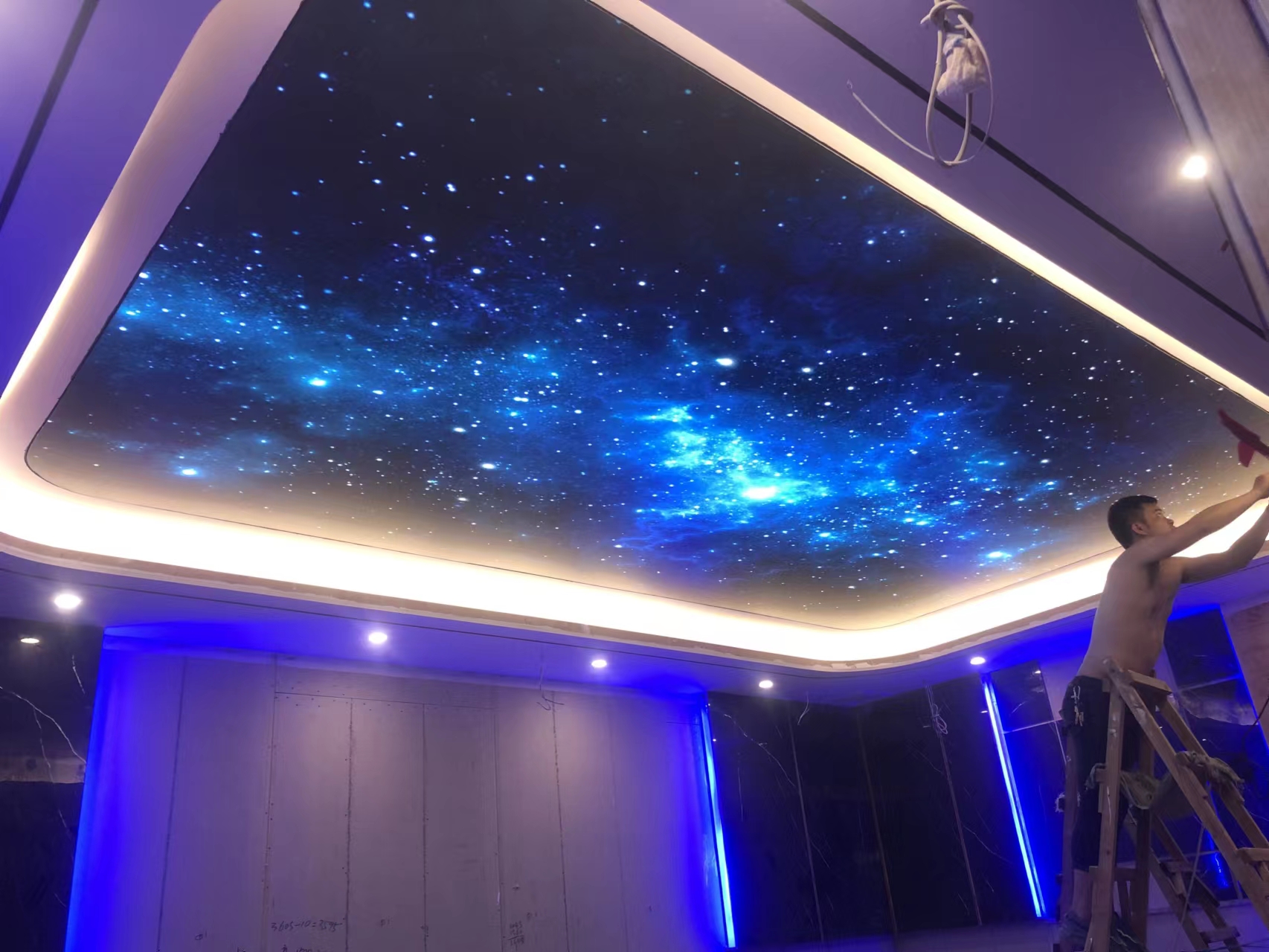 沉浸式视觉,打破空间压抑感逼真的星空图案自带视觉上的“深邃感”,有效拉伸空间层高,打破传统白色吊顶的沉闷与单调。点亮瞬间,即可为空间注入极强的代入感与氛围感。