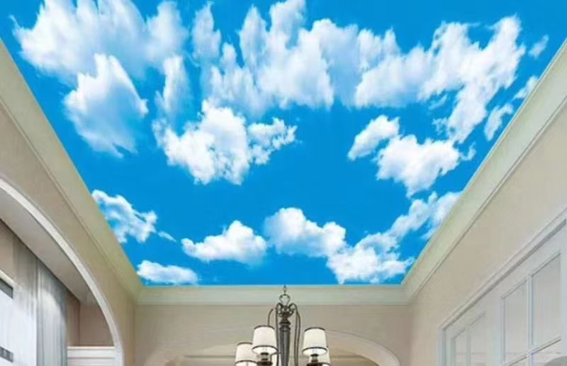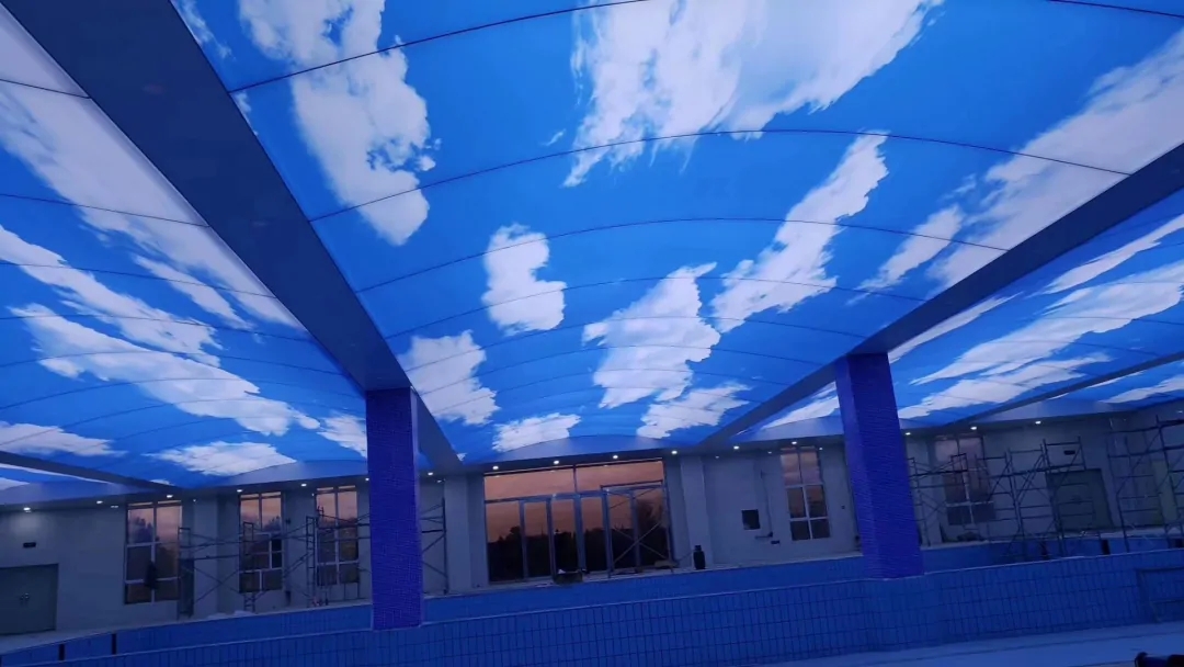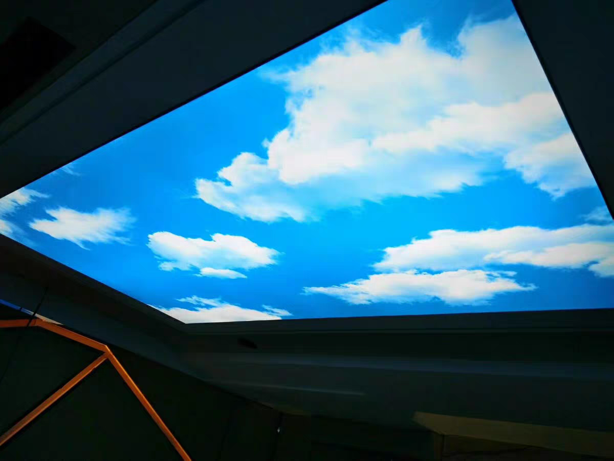 UV云景高清软膜是以高分子透光膜为基材,通过UV固化油墨直喷实现4K级细节呈现,并结合背光均光系统获得连续面光与自然天空氛围。产品支持整体吊顶/灯箱/格栅嵌入/穹顶造型等多种形式,具备防火等级(B1/A级可选)、高透光率、低眩光与耐黄变特性,适合对视觉品质和稳定亮度要求较高的公共与商业空间。