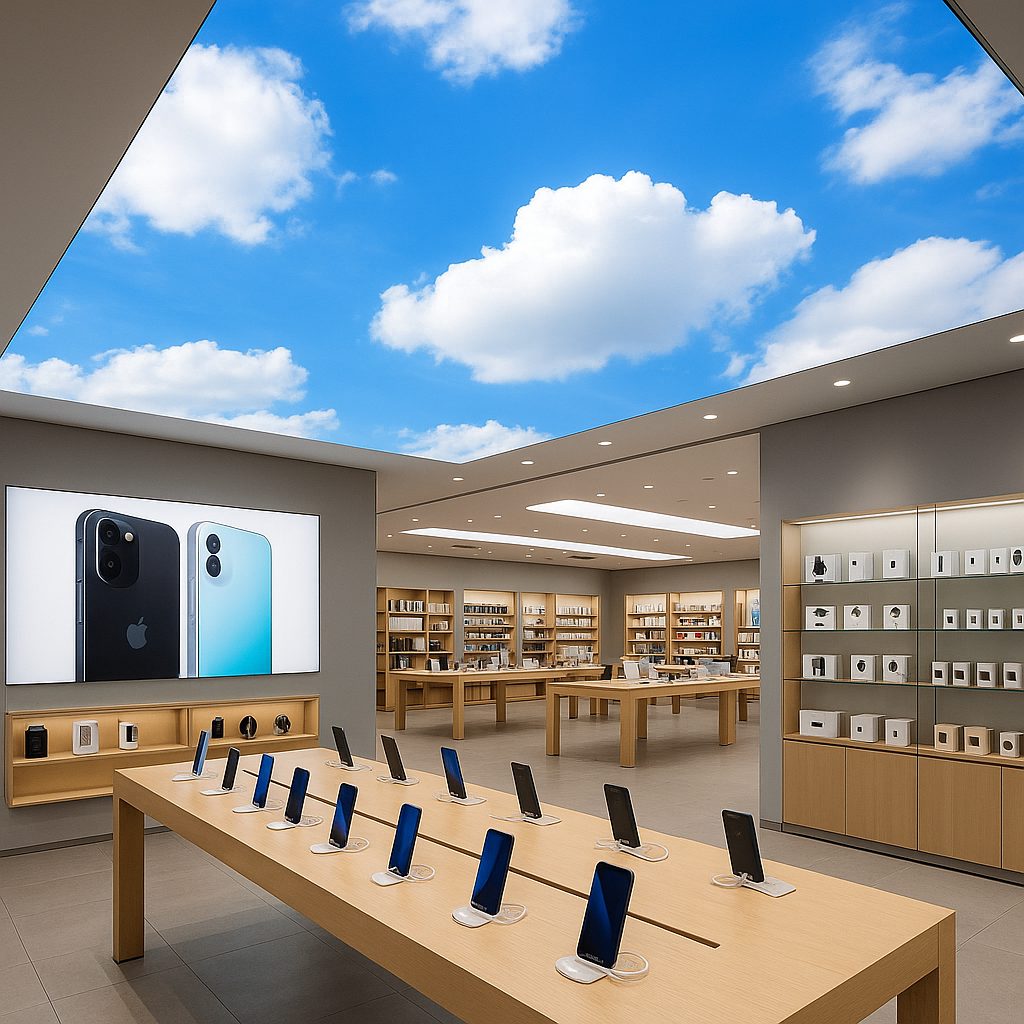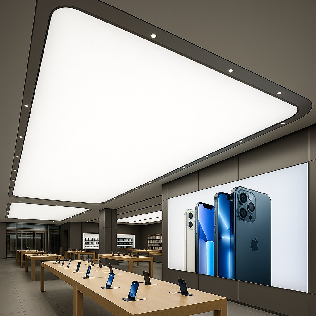 如果是传统的灯片或者亚克力,这么大面积肯定得拼接,中间就会有一道难看的黑缝,像脸上甚至了道疤。但软膜可以做到几十米无缝拼接!